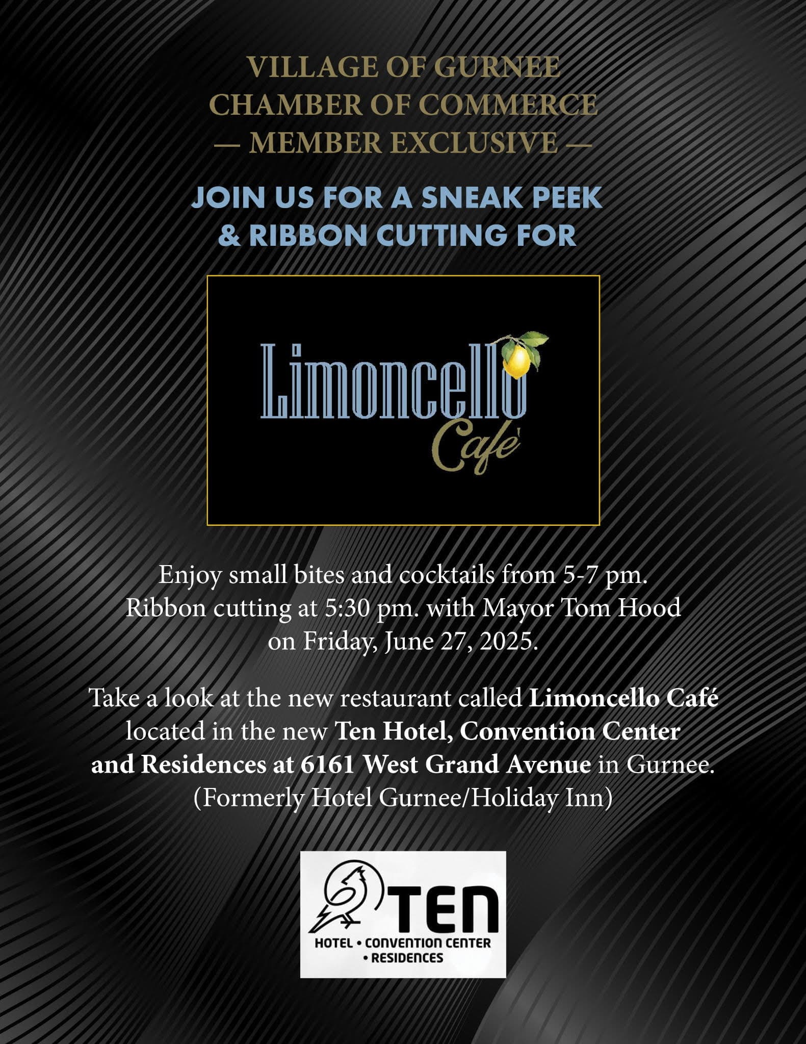 Join us for a members-only evening as we celebrate the grand opening of Limoncello Café, located inside The Ten Hotel, Convention Center and Residences.